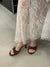 Material: Premium floral lace upper with a smooth satin toe cap, soft fabric lining, and a durable rubber outsole for traction and flexibility.